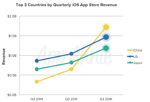 根據App Annie提供的最新報告,我國已經取代美國,成為世界上收入最多的iOS App Store市場。在今年第三季度,我國App Store市場的收入超過了17億美元,而游戲依然占據了大半壁的江山,份額達到了 75% 。