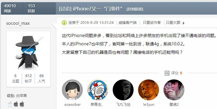 不過,說實話沒有碰到同樣問題的網友,還是占據大多數的,他們也在跟帖裡表示對遭遇者的同情,並繼續密切關注。然而,由於“基本電話功能”而惱火的網友,已經因為這個原因退貨的不少,並認為作為多年忠實的蘋果用戶現在感到很受傷。