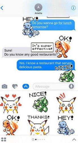 比如表情貼紙,數量還不算太多,其中“Pokémon Pixel Art sticker set”是值得購買的。其價格為12元,內置了豐富、可愛的Pokémon表情包,是付費貼紙中質量最高的,非常適合表情大戰。