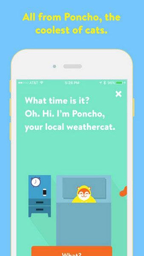 應用方面,iOS 10對Widget小插件界面進行了極大的增強,在鎖屏或主屏界面向右滑動即可進入。而為了適應這種變化,應用程序也開始增強Widget表現力。比如Poncho天氣應用,便重新設計了Widget交互性,可愛的天氣貓會在更新天氣時講一些小笑話,相比枯燥的原生天氣應用更有趣。