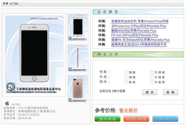 現在我們已經知道 iPhone 7 的型號是 A1660,iPhone 7 Plus 則是 A1661。然而,最近有網友在國內工信部網站上看到了一款全新的 iPhone 7,它的型號是 A1786。從工信部的配圖以及電池容量(2900 毫安時)來看,這是一款 iPhone 7 Plus。它既不是我們平時常見的國行版、港版、美版、日版的其中之一,而且還取消了對中國電信網絡的支持。