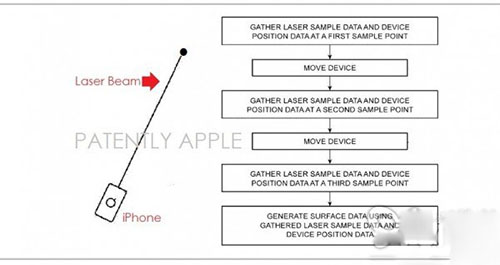 谷歌的技術提到,通過他們的3D相機用戶可以測量周圍環境並在增強現實App中重新安排家具的擺放位置。這正是今天蘋果專利中所涵蓋的內容。在收購PrimeSense公司之前,蘋果探索這項技術的方式有些不同,但技術類型是一致的。蘋果獲批的專利標題為“具備投影電路系統的電子設備”。通過這個專利我們發現其可以讓iOS設備(比如iPhone)具備投影功能,iPhone利用激光傳感器和激光束收集房間的測量信息,包括下圖中提到的形狀、距離、環境物體的參數以及容積數據。