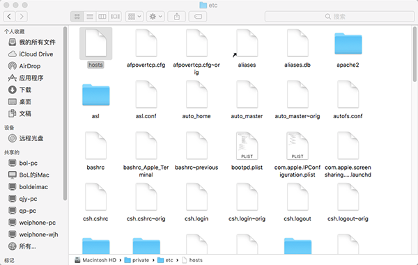 2. 接下來,我們可以將 Hosts 文件復制到桌面等其他位置再進行修改,編輯之後保存,再將其拖拽回原來的文件夾,替換原文件即可。