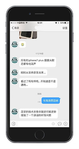 還有網友爆料,iPhone 7 Plus的電流聲問題反饋給蘋果客服後,對方給出的回復是可能是漏電或新增加了一個通話聽筒的問題,而有電流聲用戶可前來換機。