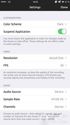 iRec提供了一系列自定義功能,用戶可以調整錄制視頻的輸出參數,包括配色方案、分辨率、FPS、音頻源、采樣頻率等。