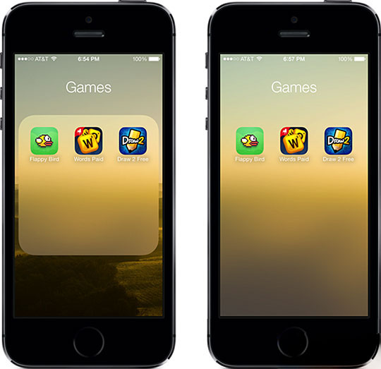 BlurFolders是一款可以虛化iOS7文件夾整個背景的插件,安裝BlurFolders後打開文件夾,你不會看到虛化的文件夾以及原色的背景,展現在你面前的而是一整塊虛化背景。