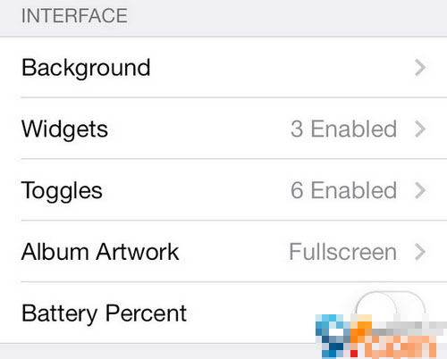 在界面的選項部分,包含了背景圖、小工具、專輯藝術、電量的設置 。