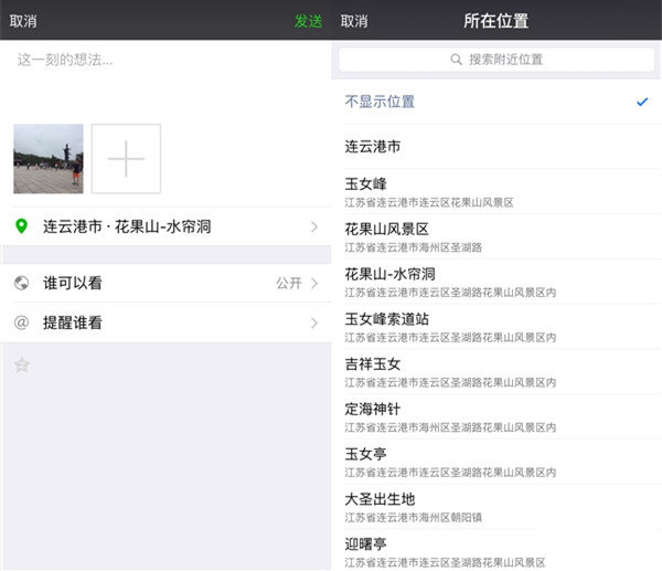 最近iOS版微信迎來一個更新,而這次更新的一個隱藏的技能就是發朋友圈的時候可以根據照片的拍攝地點顯示目前所在地,這樣就能回到國內繼續任性裝X啦。當用戶選中想要發送的照片後,點擊“所在位置”,微信便會讀取照片中的位置信息。有了這個功能後就意味著,當你外出游玩無暇發朋友圈或者處於沒有網絡環境的時候,也能等到網絡環境適宜的時候補發朋友圈。