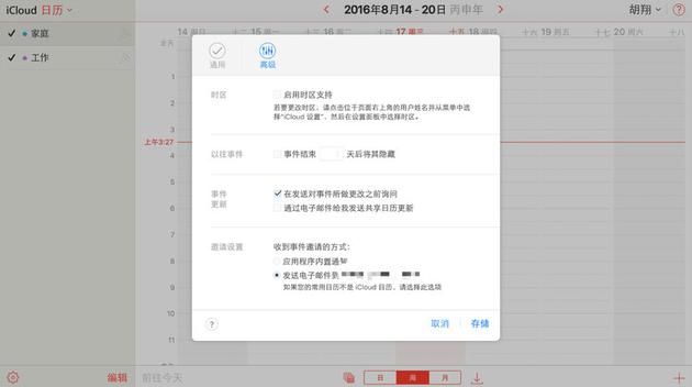 還有一種方法是登陸電腦端 iCloud 日歷點擊“左下角的齒輪→偏好設置→高級”,把接收到的邀請更改為直接發送到郵箱裡,這樣郵箱就會幫助你過濾垃圾廣告,而不會直接發送到本地日歷應用上了。