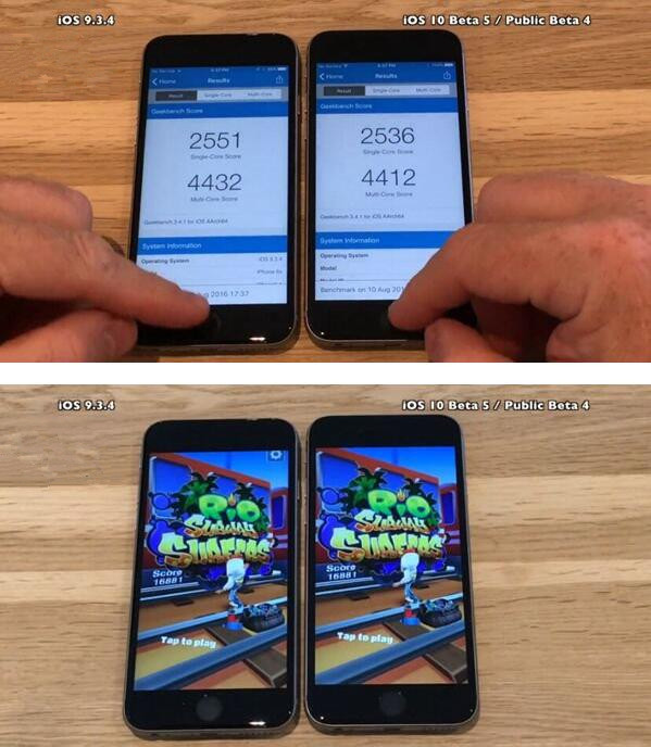 事實上伴隨著iPhone機型的增多,廣大蘋果用戶對於iOS也頗有微詞,其中尤為值得關注的就是系統升級之後前幾天的發熱問題,這些問題也會伴隨著手機的使用逐漸緩解,但是動辄幾千元的手機出現這種現象不免降低了用戶體驗,近日有國外網友測試了最新的穩定版系統iOS9.3.4以及蘋果iOS10 Beta5的運行視頻,令人欣喜的是在iPhone6s上面iOS最新測試版的運行速度更快,絕對值得升級。