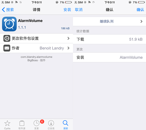 ①在Cydia中,搜索AutoBrightness,並安裝該插件。