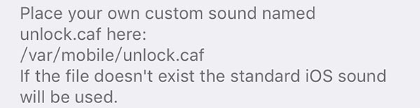 ⑥如果你想向文件系統中導入解鎖聲音,只要把文件名取為unlock.caf的聲音文件,上傳到iPhone的“文件系統 /var/mobile”裡,就能使用自定的解鎖聲音了。