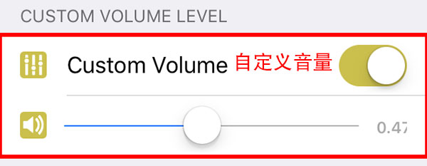 ⑤【Custom Colume】是自定義音量,開啟選項後,滑動橫桿就可以調節解鎖音量了。