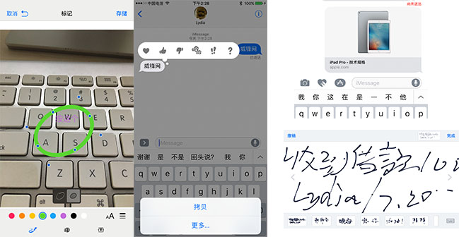 要說iMessage的潛力,在辦公方面也或多或少體現出來。比如Rich links 可以讓你直接在iMessage會話框預覽網頁內容。Tapback可以快速對某條信息發表意見,是“贊”還是“踩”。標記功能可以讓你對某張照片添加注釋,比如文本、塗鴉、細節放大。手寫功能可以用在“親筆簽名”,這些看似細微的功能如果發揮想象力,你會發現作用還是很大的。