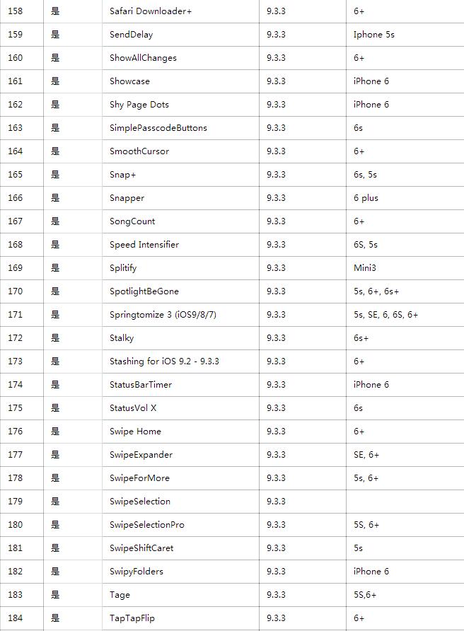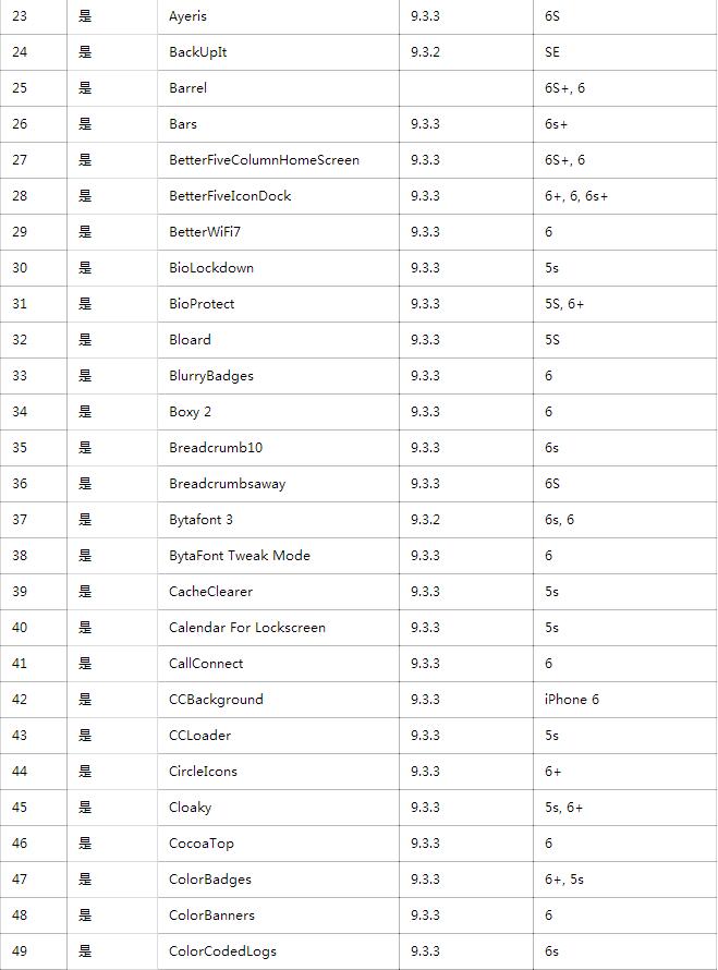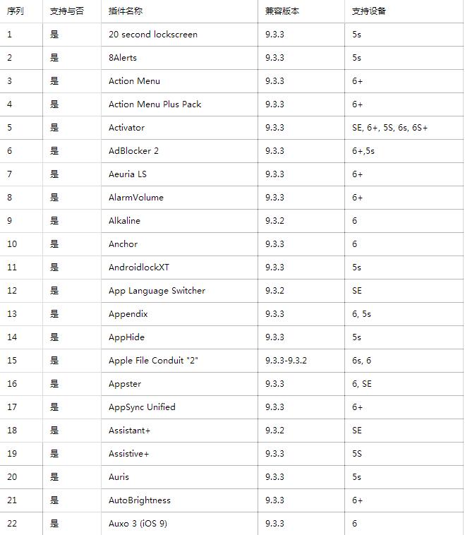 上周末,正式發布了iOS9.2-iOS9.3.3越獄工具,不少用戶已經迫不及待升級iOS9.3.3越獄了,那麼,iOS9.2-iOS9.3.3越獄兼容哪些插件呢?畢竟,越獄就是為了那些功能炫酷的插件啊!現在經過大神們的親測,iOS9.3.3越獄插件清單已經出爐了。