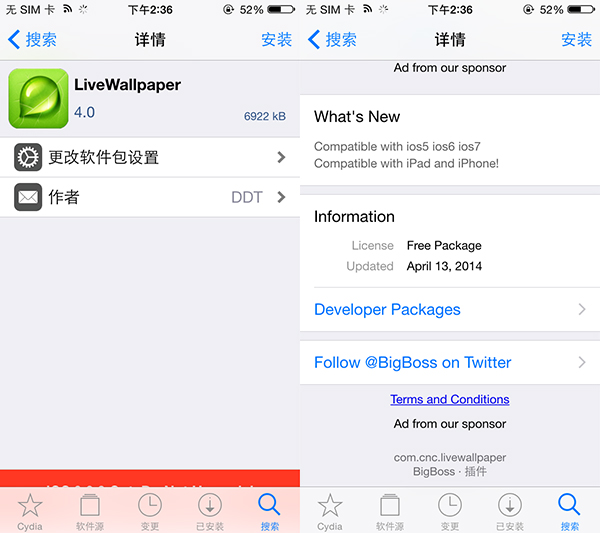 目前,該插件已兼容iOS 9及以下越獄系統,暫不支持iOS 9.1及以上系統。有興趣的小伙伴可以在BigBoss源中免費下載到該插件,越獄免費源大全。