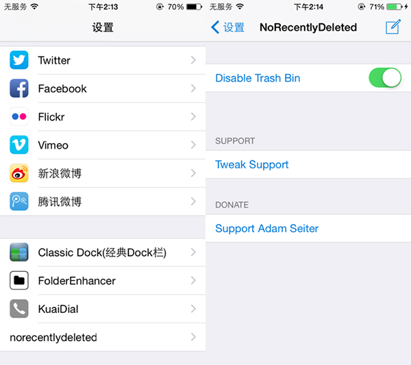 NoRecentlyDeleted是一款可以禁用iOS 8設備相片中的"最近刪除"文件夾,使用戶刪除相冊後會直接刪除。