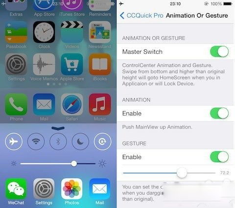 有了CC QuickPro,你現在可以為設置增加新的開關,可以更改按鈕外觀以及在工具條增加新的應用,甚至是改變動畫效果。