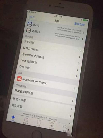 在前幾天舉行的在MOSEC移動安全技術峰會上,國內iOS越獄團隊盤古展示了他們iOS10越獄的成果。從圖片上我們可以看到Cydia工具在iOS10 Beta上已經成功運行,但是盤古方面並未透露更多消息。