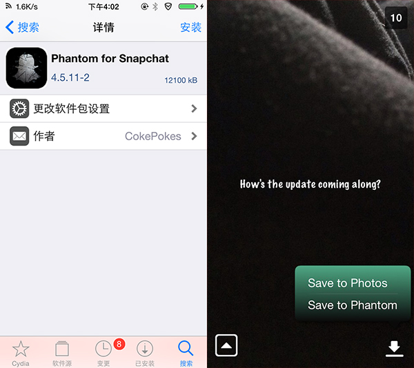 越獄插件Phantom for Snapchat:解除Snapchat限制插件
