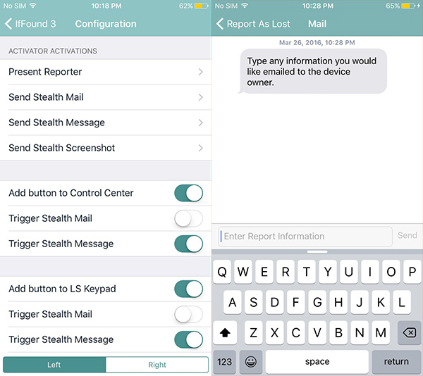 IfFound3是一款可以讓你在鎖屏界面顯示你的個人信息的插件,可以允許你預設置一些信息然後添加到鎖屏,如一些文字,地址,電話號碼,郵箱等,目的是設備在丟失後讓別人可以快速聯系到你。