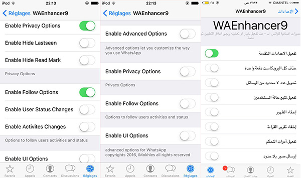 WAEnhancer9是一款針對時下熱門IM軟件WhatsAPP的增強插件,可以為您解除WatchsAPP許多不人性設置與增加許多第三方功能。