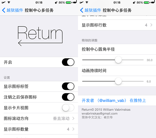 Return是一款控制中心後台插件,它可以讓用戶通過一個放置在控制中心頂部的啟動器來快速進入最近使用過的應用,這使得它填補了控制中心沒有被利用到的區域。