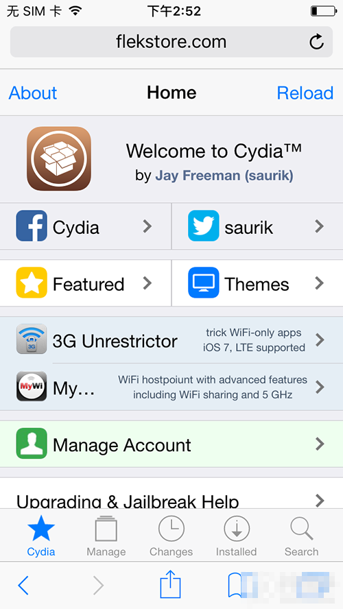 1、用iPhone自帶浏覽器Safari打開以下地址:flekstore.com/apps/cydia/#view3