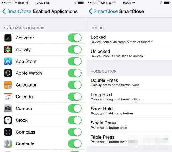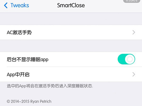 SmartClose是著名插件開發者Ryan Petrich的又一力作,它可以將後台運行的應用置於深度睡眠狀態,從而占用更少的系統資源,現在這款插件還只能支持iOS8.4及以下的越獄系統。