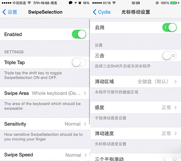 SwipeSelection是一款非常受歡迎的插件,它的功能就是讓用戶在輸入的文字中隨意的移動光標。此外開發者還推出了收費版本SwipeSelection Pro,添加許多新的特性和功能,包括在應用內禁用、滑動敏感度、光標速度等。