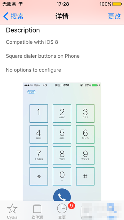 經過測試,Square Dialer Buttons插件可以非常好的兼容iOS8操作系統(很遺憾並不支持iOS9越獄),由於這款應用主要是在打電話的時候使用,所以基本上iPad和iPod touches沒有必要安裝這款應用軟件。