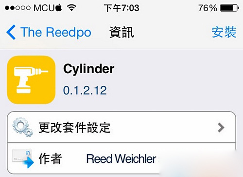 2.新源地址添加完後,在Cydia底部選【搜索】,然後在搜索框中輸入Cylinder. 提示:如果搜索不到Cylinder,可以進入Cydia-【變更】-點擊左上角【刷新】-再搜索該插件。