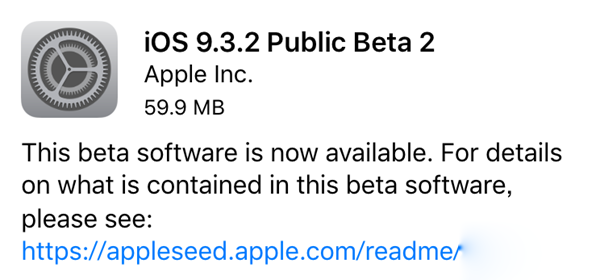 蘋果今天凌晨放出了iOS9.3.2系統的第二個公測版本,距離上一個版本發布已有2周時間,在這段時間裡,蘋果關閉了部分iOS9.3固件驗證,iPhone6及以上型號設備已無法再降級至iOS9.3系統。蘋果iOS9.3.2 beta2公測版更新了什麼內容、怎麼升級iOS9.3.2 beta2呢?
