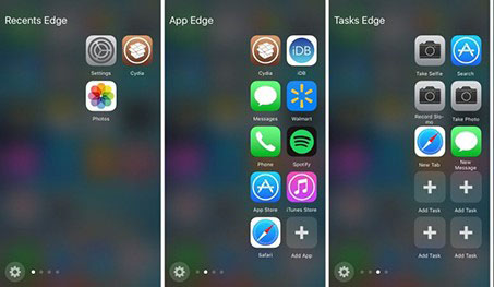 近日在越獄社區中出現了一款名為“Edge”的插件,它可以讓用戶在iOS系統中通過特別的滑動手勢來隨時呼出一個實用的新菜單,這個新菜單可以讓你快速訪問應用、任務、聯系人等一系列要素,讓越獄後的iPhone一秒變成“三星S7 Edge”。