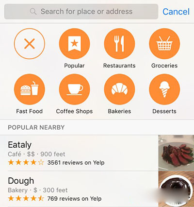 蘋果地圖如今也變得更加實用,它可通過來自第三方的數據展示周邊的商業服務,比如餐飲和購物地點。
