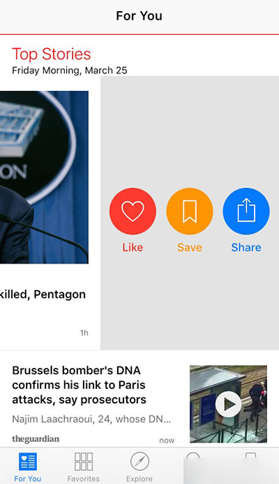 Apple News應用也得到了修改,新的捷徑可幫助用戶對新聞源進行自定義。只需在一篇報道中向左/右滑動,蘋果的算法就會漸漸了解到你的閱讀喜好。