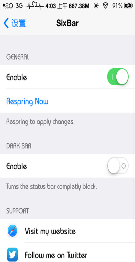 SixBar是一個懷舊經典狀態欄的插件,它可以將iOS 7和iOS 8的狀態欄修改成iOS 6系統的界面。是大多數喜愛iOS 6的獄友都有用過這個插件,配合Ayecon主題使用更佳。點擊這裡查看更多越獄免費源大全。