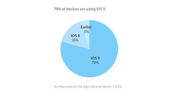 截至3月7日,iOS9的安裝率已上升至79%。這是蘋果今天在其官網上的開發者頁面上公布的信息,這個比例同樣基於App Store下載數據的統計,與上一次(2月22日)蘋果公布的數字相比上升了兩個百分點。就在幾天前,蘋果發布了iOS9.3的第六個測試版,預計正式版也會在近期放出,不知道iOS9的安裝率能不能借助iOS9.3的到來大幅提升?