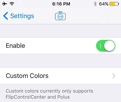在設置應用裡可以對 Cream 進行設置,它並沒有提供太多的功能可選,你可以根據需要打開或關閉插件。如果你使用 FlipControlCenter 和 Polus 的話,還可以對控制中心開關的顏色進行自定義。