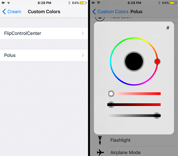 Cream可以給iOS的控制中心外觀帶來新鮮感,甚至只需對其中的一個按鈕進行調色就可以為用戶界面帶來很大的不同。watchOS 的開關較少,只有 3 個:飛行模式、勿擾模式、鈴聲和靜音;iPhone 上的快捷開關則有 5 個:飛行模式、Wi-Fi、藍牙、勿擾模式和旋轉鎖定。Cream 可以讓這 5 個開關擁有類似 watchOS 的顏色。雖然它只是一款小插件,但它可以配合 FlipControlCenter 和 Polus 使用。