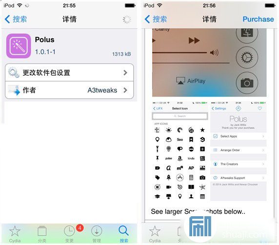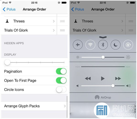 自從 iOS 7 能夠越獄之後,底部控制中心定義插件似乎成了一個“兵家必爭之地”,各個開發者或是開發團隊都喜歡在這個部分下功夫,目前關於控制中心定義的插件已經不少,比較知名的就是 FlipControlCenter、CCControls、CCtoggles,而今天小編要給大家介紹的 Polus 同樣是一款底部控制中心定義插件,使用方法同樣簡單方便,而 Polus 最為人們稱道的就是那 300 多個自定義圖標了。