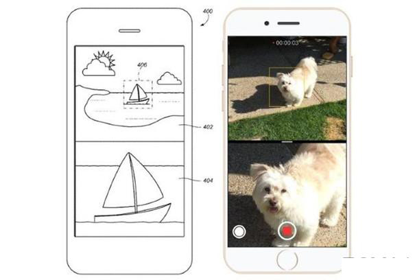 兩個鏡頭可以同時獨立地拍攝照片或視頻,蘋果軟件能以一種獨特方式把照片融合在一起。專利申請材料顯示,在相機應用中,兩個鏡頭拍攝的圖像可以通過分屏方式顯示在同一畫面,一側顯示標准廣角圖像,另一側顯示長焦鏡頭拍攝的圖像。