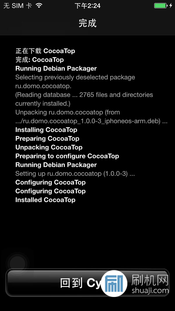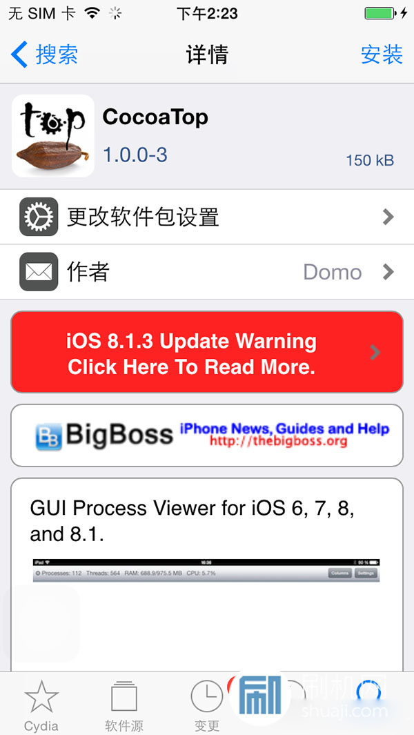1.Cydia 搜尋「coco」,會找到「CocoaTop」,再將它安裝起來。