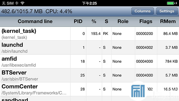 計算機可透過工作管理員查詢目前有哪些背景程序在運行,或者是可查出哪些程序正占用CPU資源,在iOS上是否也有辦法這樣查詢呢?透過越獄後就能達成這項功能,CocoaTop插件讓用戶得知目前CPU使用狀態,也可的知系統底下有哪些程序在運行中。