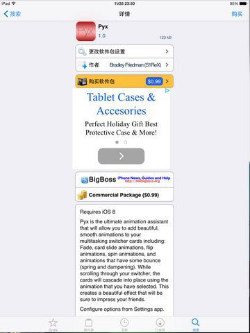 目前這款插件在Cydia中售價為0.99刀,語言為英文,且僅支持iOS8系統。喜歡彰顯個性的用戶可以安裝使用。點擊這裡越獄免費源大全