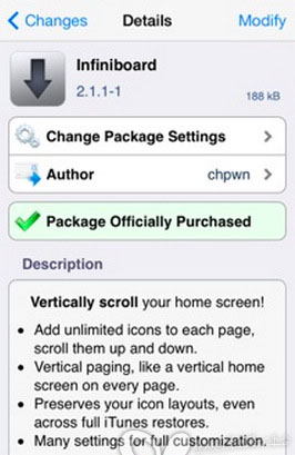 打算將橫向的翻頁風格轉為縱向的用戶。打開Cydia並搜索安裝InfiniBoard ,安裝後重新啟動設備。即可將應用隨你的個人喜好慢慢調整位置!將他們排到單一分頁之中!