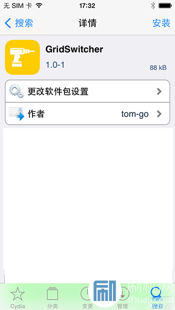 1.進入Cydia搜索【GridSwitcher】,選擇上述源內免費安裝。