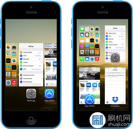 GridSwitcher是一款改變後台應用切換布局的插件,由ios7的卡片橫滑改變為ios6時代的卡片網格形式,後台沒也可以網格布局排列4-9個程序,iphone上默認為2×2的布局,ipad上默認為3×3的布局。