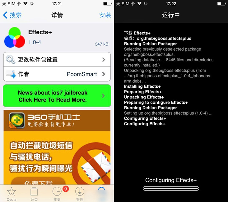 1.如果你的設備已經越獄了,那麼相信你肯定已添加BigBoss源。這樣一來,打開Cydia源,你就可以直接選擇下方【搜索】,然後在搜索框中輸入Effects+。點擊這裡iPhone免費源大全