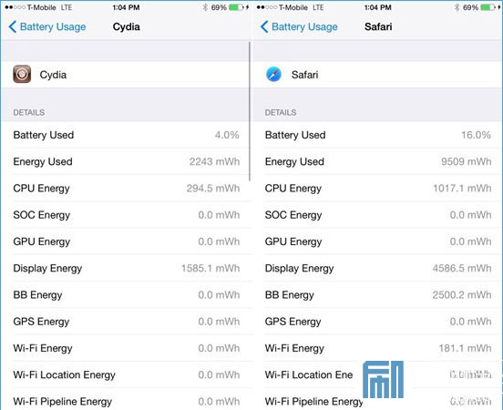 蘋果在iOS8系統中新增了一項可以讓用戶查看各應用的電量消耗功能,而越社區最新推出一個名為DetailedBatteryUsage的新插件,更是可以解鎖蘋果內部開發測試階段使用的iOS8電池用量統計功能,可以說是電池潔癖強迫症的福音。